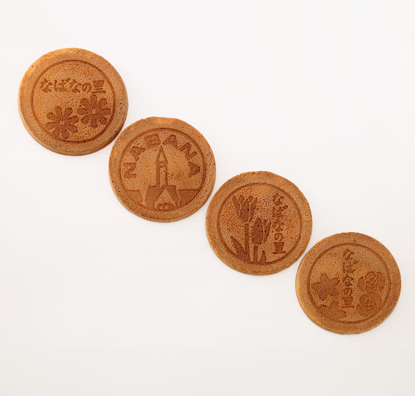 菰野町きららの里の卵をふんだんに使用 長島温泉で毎年大人気のイルミネーション。 日の出屋製菓でもイルミネーションをイメージしたオリジナルのお菓子を作っています。 菰野町きららの里の卵をふんだんに使用したたまごカステラせんべい。 4枚それぞれに、なばなの里の絵を刻印しています。 パッケージは、イルミネーション点灯時期バージョンと春夏バージョンがあります。