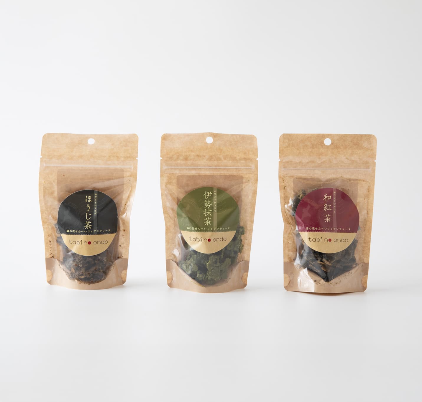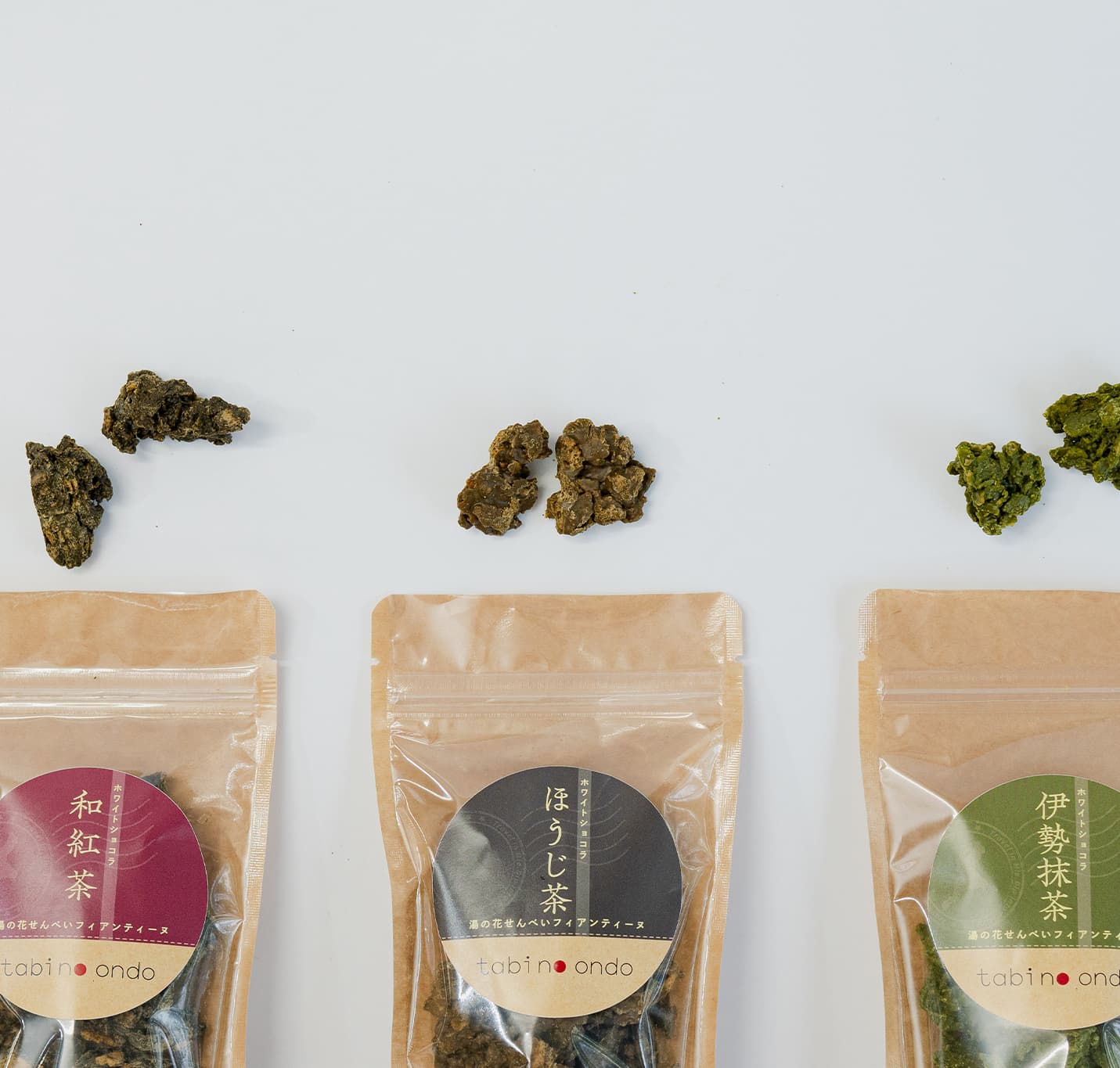 ☆おもてなしセレクション2021金賞受賞!!☆ 「旅するお菓子」をテーマに三重県産の素材を様々な形で提案する新ブランド「tabino ondo」その第1弾は「三重のお茶」です。 食感が残るくらいにザクザクに砕いた湯の花せんべいに香り高い茶葉とホワイトショコラを贅沢に使用し、食べやすいクランチにした「和のフィアンティーヌ」三重県各地から厳選した伊勢抹茶・ほうじ茶・和紅茶の3種類のチョコをご用意しました。茶葉の濃い味とショコラの組み合わせ、ザクザクの食感がクセになります。日の出屋製菓と京都で独創的なスイーツを展開する「北野ラボ」との共同製作。炭酸せんべいで作る新感覚の和スイーツを是非お試しください。