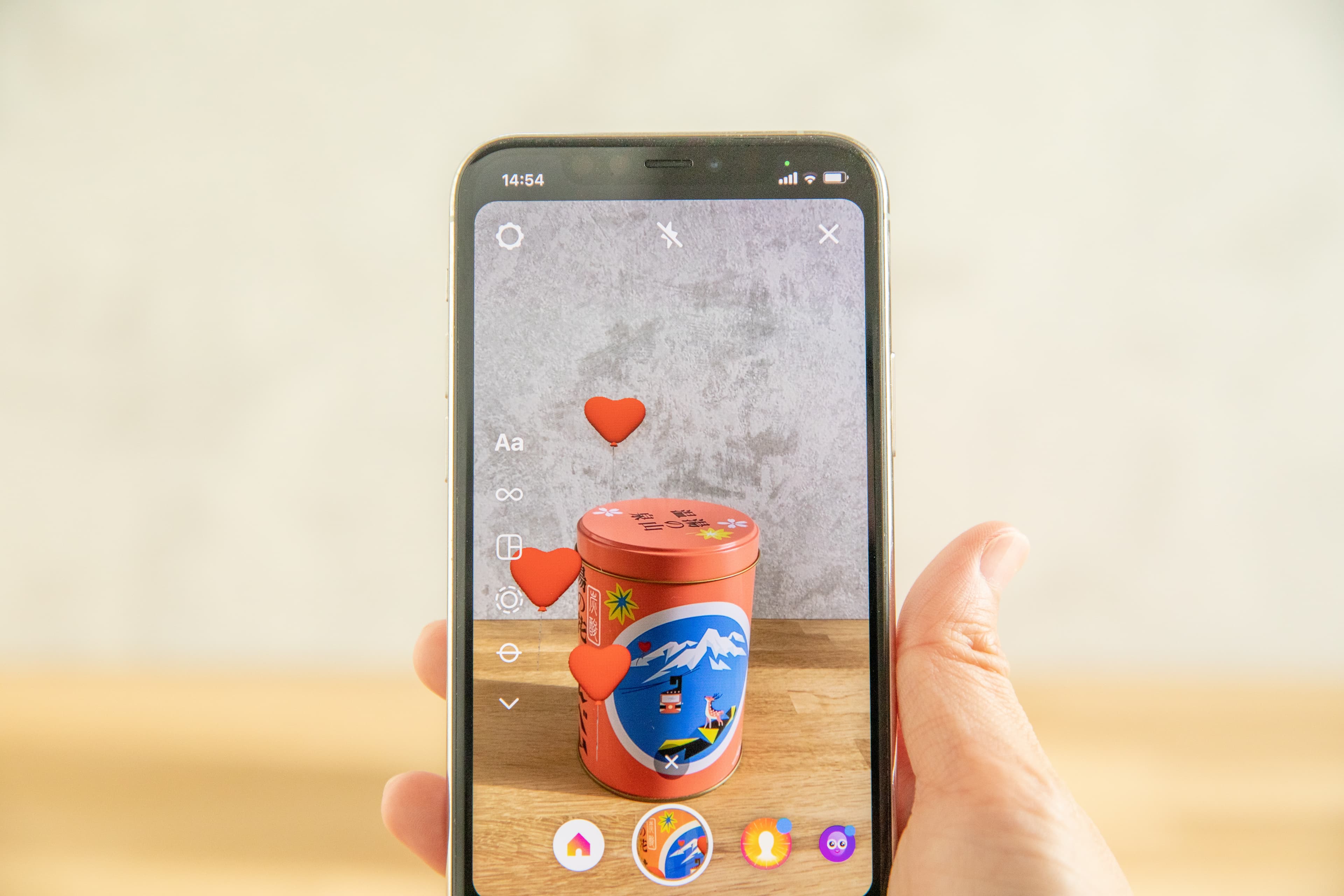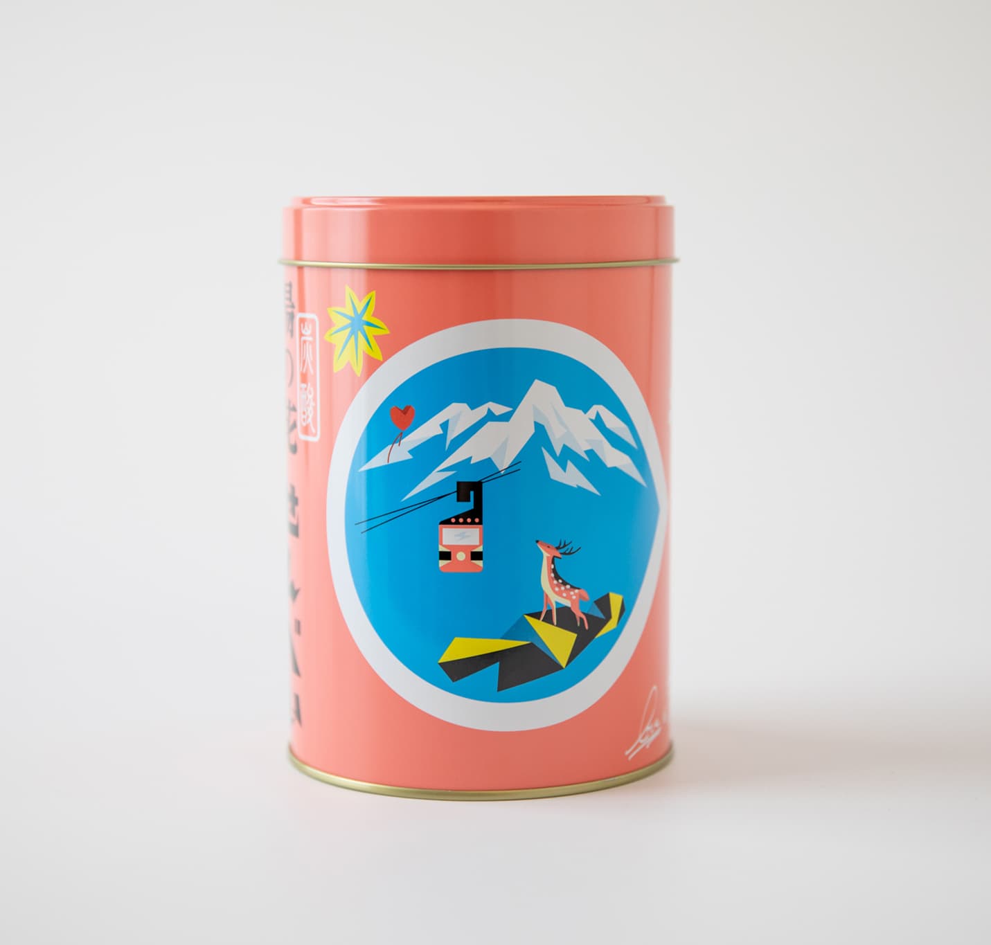 おもてなしセレクション2020で金賞を受賞した湯の花せんべい。 ARを実装した最新パッケージです。オリジナルデザインの中にどこかへ飛んで行くハートの風船。 スマホを使ってinstagram(@hinodeya_seika)へアクセス。缶の♡をinstaカメラで読み込むと画面上でハートの風船が飛んで行きます。 さらにもう1つの360度ARフィルターでは、缶のイラストの風景の中に入って、湯の山温泉に行った気分になれます。自分の背景がぐるりと湯の山温泉の景色に!現地の自然音も入ってます。 2020年の「おもてなしセレクション」で20ヵ国の海外審査員に評価頂き、現在もアメリカNY,ブルックリンのギャラリーでパッケージは常設展示されています。(2023年2月まで) 中身は丸缶とおなじく24枚入の湯の花せんべいが入っています。